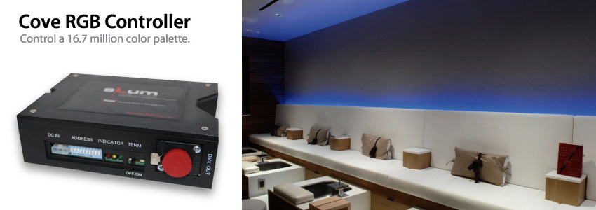 Cove RGB Controller is Ideal for Architectural, Retail, Entertainment, Specialized venues and other installations. This controller is designed to receive DMX512 protocol and to drive up to 40’ of cove strips. The SAVI Cove RGB Controller uses 24VDC power and three 0.5 - 5V analog control signals to vary the intensity of the red, green, and blue LED’s. The controller’s DMX input is fully opto-isolated and is bi-directional thus allowing the implementation of ESTA’s RDM protocol. RDM is implemented to allow remote setting of the interface’s DMX address and to gain access to the built-in effects package.